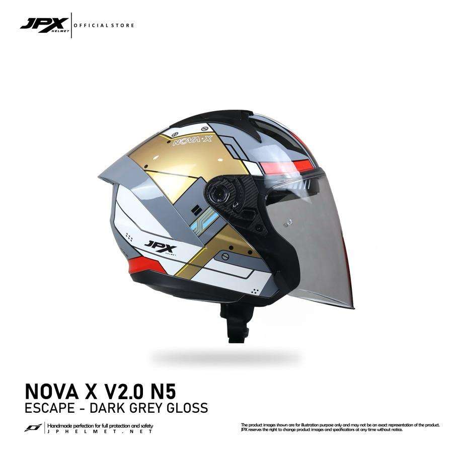 JPX V2หมวกกันน็อคครึ่งหน้า nova x V2แบบ N5มีกระบังหน้าคู่และการออกแบบสีทึบทันสมัยสำหรับผู้ขับขี่สมัยใหม่