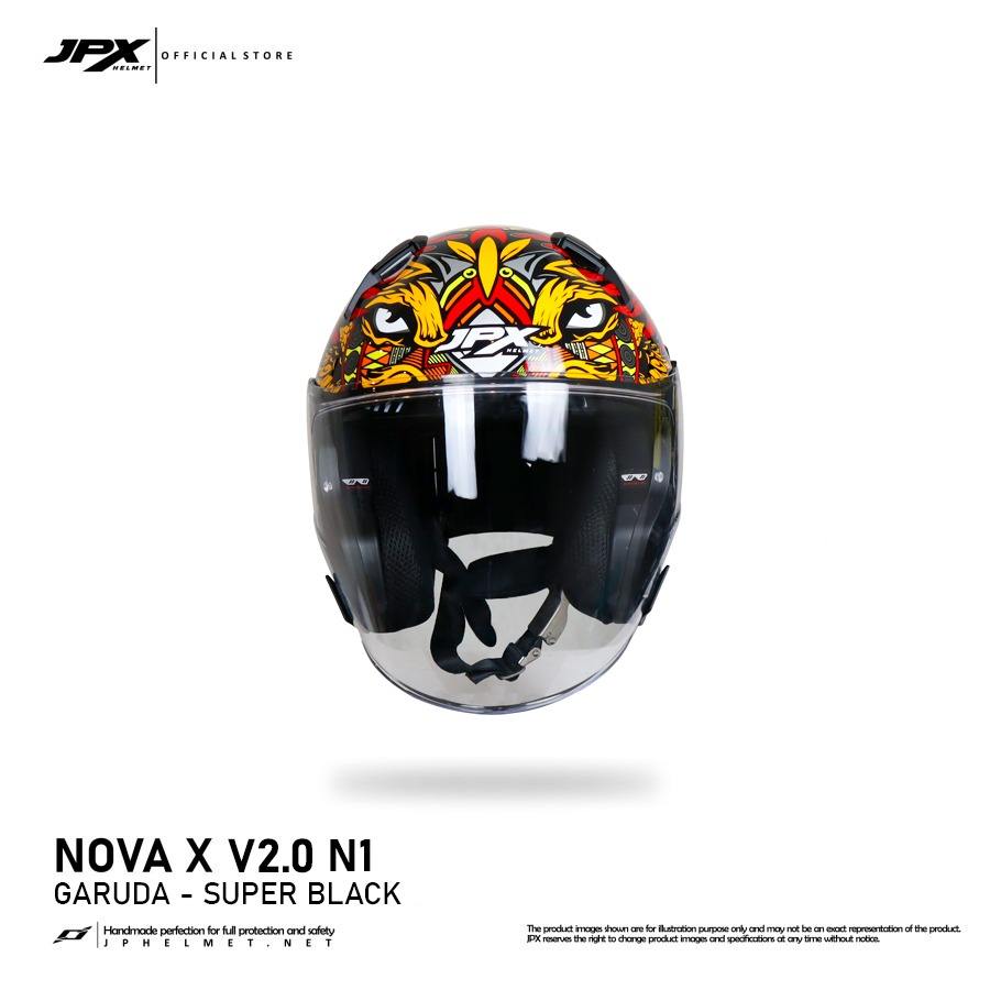 JPX V2หมวกกันน็อคครึ่งหน้า nova x V2แบบ N1มีกระบังหน้าคู่และการออกแบบสีทึบทันสมัยสำหรับผู้ขับขี่สมัยใหม่