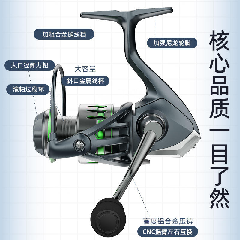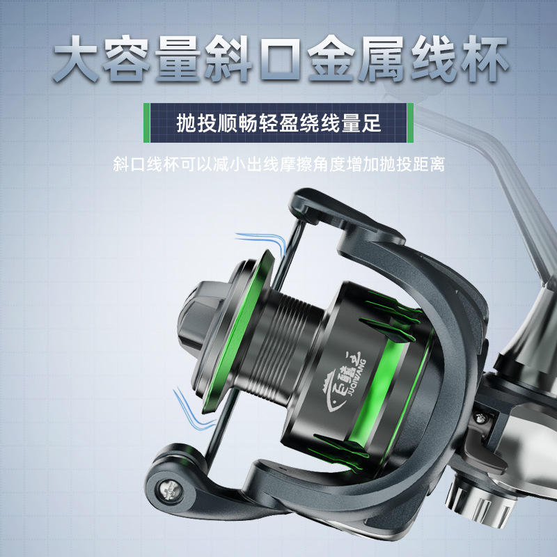 JQWBJHASI117 รอกตกปลาแบบหมุน ตัวเครื่องโลหะ สำหรับตกปลาทะเลและน้ำจืด พร้อมรองรับเหยื่อปลอม
