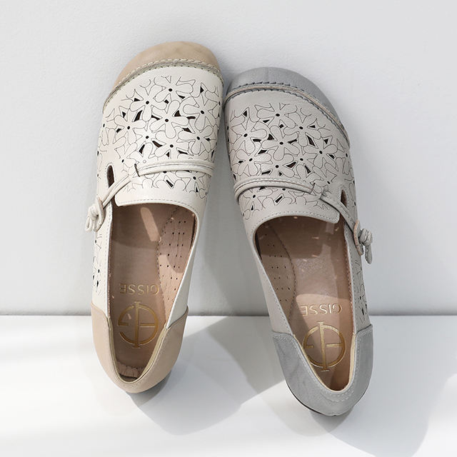 Jshoe รองเท้าแบบเจาะรูหนังแกะแท้, รองเท้าสวมใส่สบายสำหรับผู้หญิงส้นเตารีดทรงดอกไม้ตัดออกจากความสูง5ซม. ทำจากเกาหลี