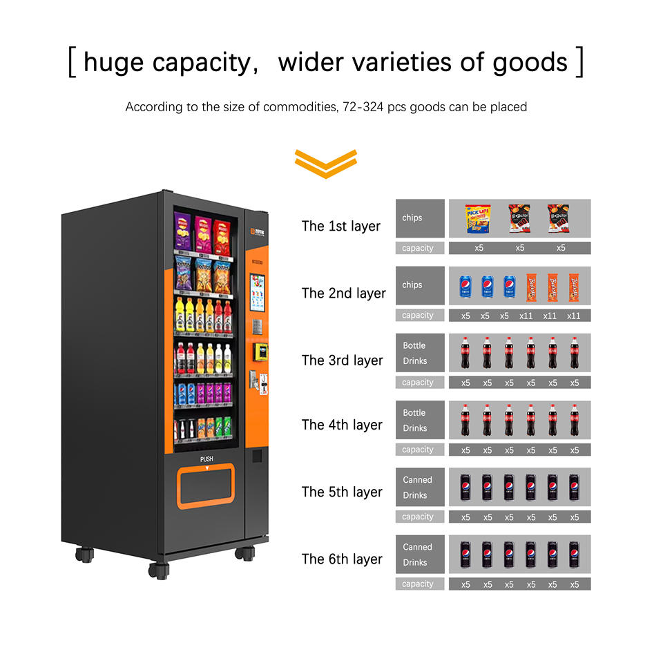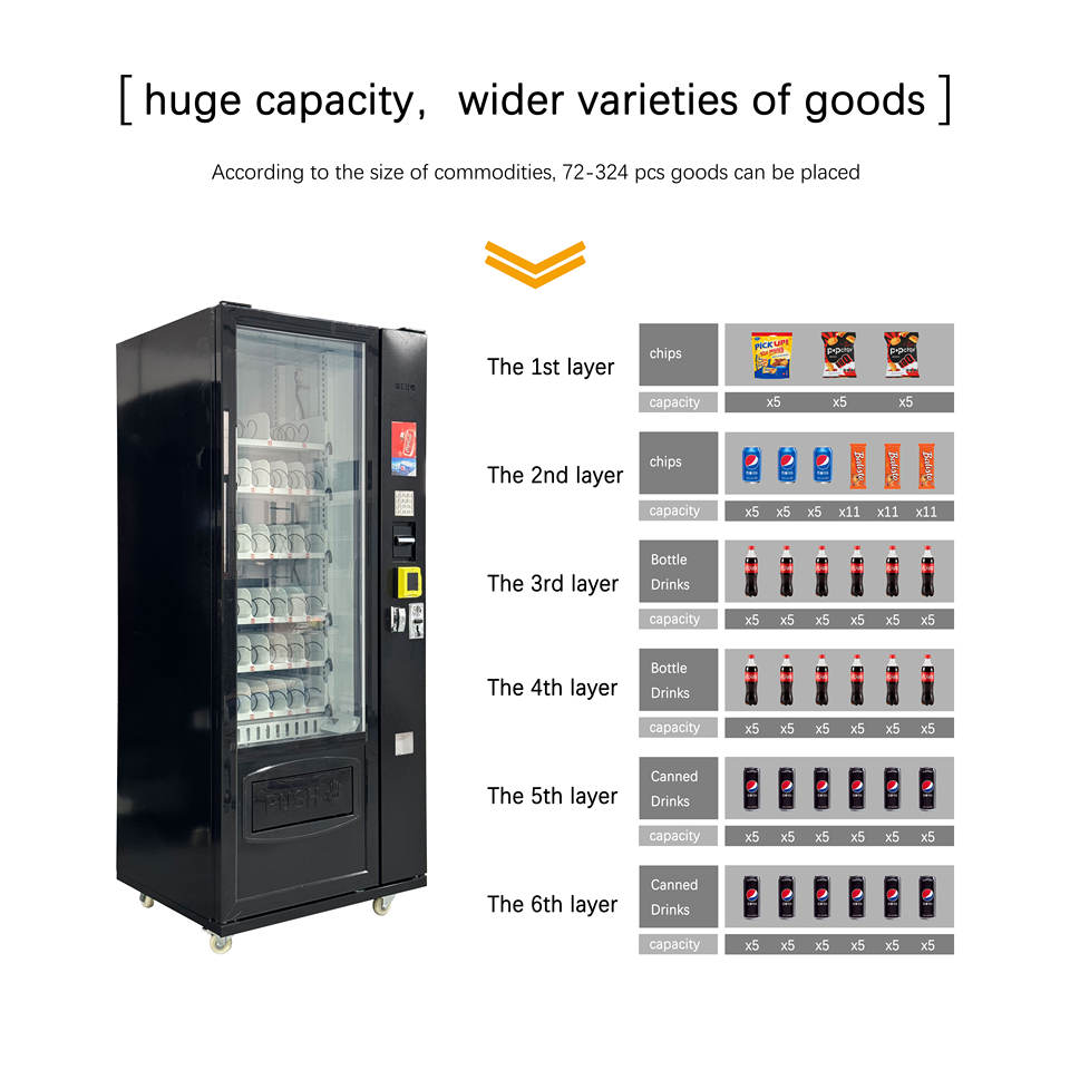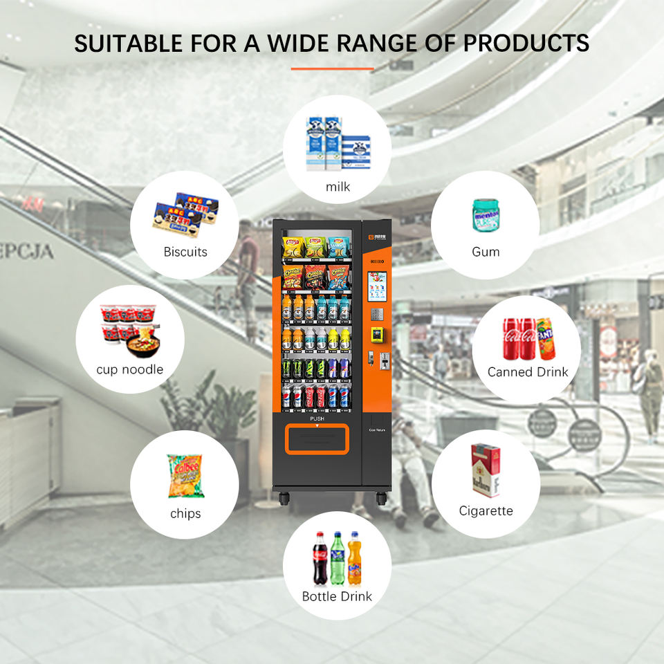 JSK ตู้จำหน่ายอาหารและเครื่องดื่มเครื่องคอมโบบุหรี่เครื่องอัตโนมัติพร้อมหน้าจอสัมผัสและเครื่องวัดระยะทางไกลสำหรับร้านค้า