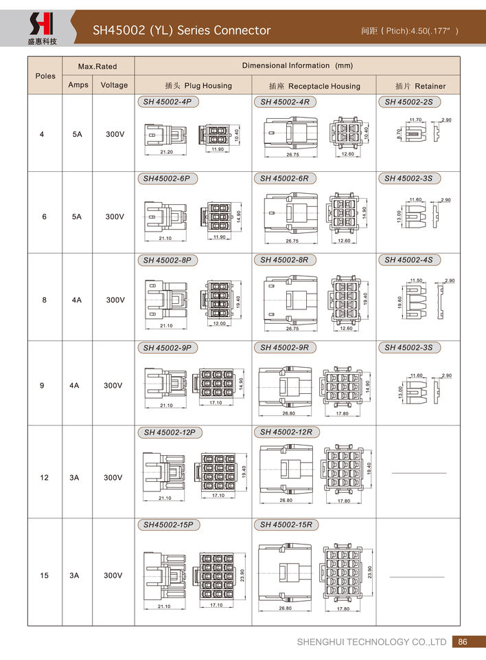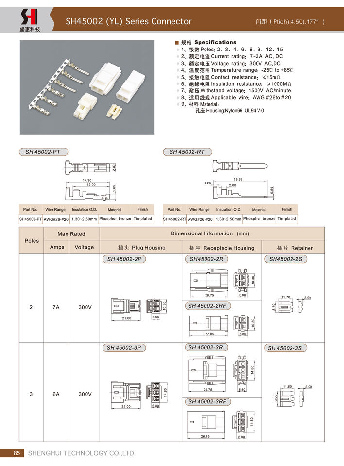 ขั้วต่อปลั๊กตัวผู้แบบมีปลอกหุ้ม ระยะห่างระหว่างขั้ว 4.5 มม. รุ่น JST YL YLR YLP YLP-02V YLP-03V YLP-04V YLP-06V YLP-08V YLP-09V