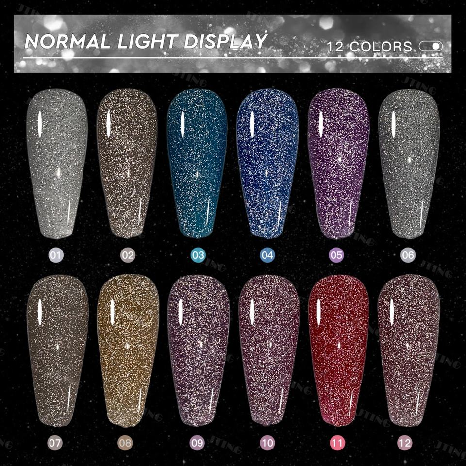 JTING New Popular Sparkle Diamond Bling Reflective Disco Diamond Gel Polish 12colors Set OEM Flash Reftetive Gel Nail Polish