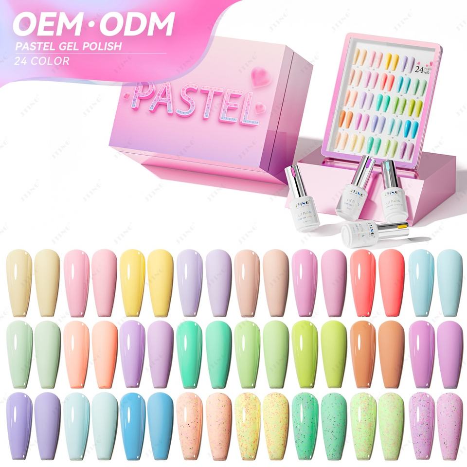 ชุดเจลทาเล็บสีพาสเทล 24 สี ดีไซน์ดั้งเดิมจาก JTING รุ่นอัปเกรด บรรจุในกล่อง พร้อมรับผลิตแบบ OEM อุปกรณ์ทำเล็บแบบกำหนดเองเฉพาะ ยาทาเล็บเจล