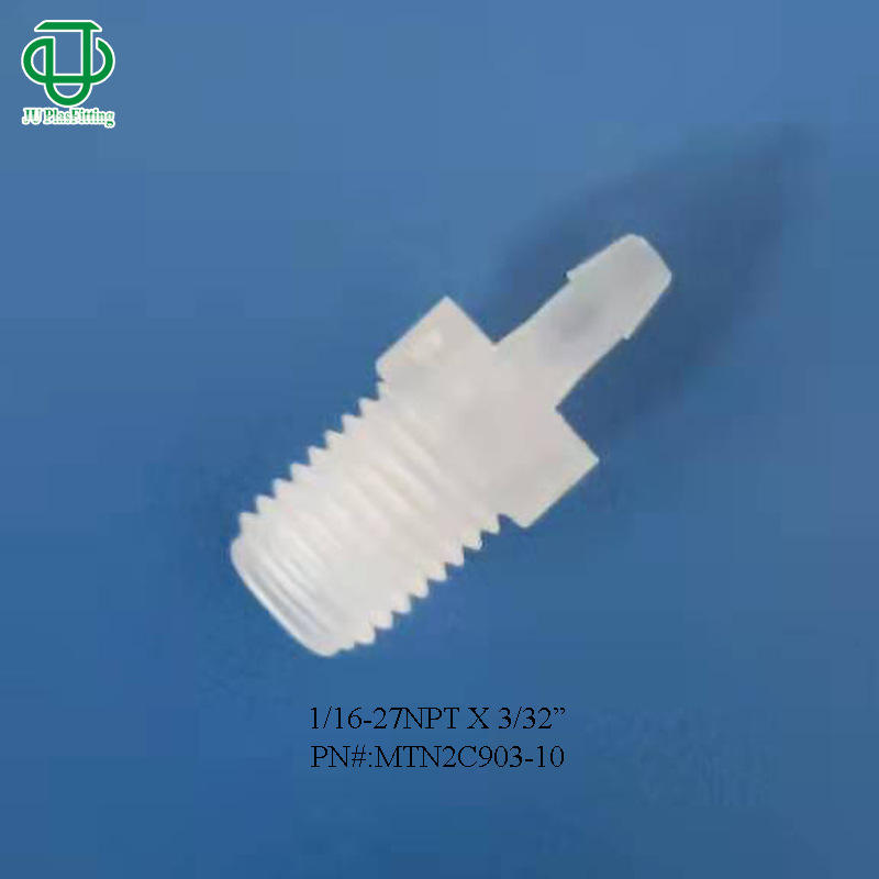 ข้อต่อตรงแบบเกลียวนอก JU Collection PP พลาสติก ขนาด 1/16-27NPT สำหรับสายยางขนาด 10 มม.