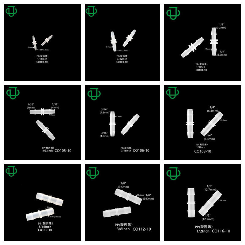 ข้อต่อท่อพลาสติก PP ยี่ห้อ JU Collection ขนาด 1.6-12.7 มม. แบบมีหนาม ใส สำหรับเชื่อมต่อสายอุตสาหกรรม