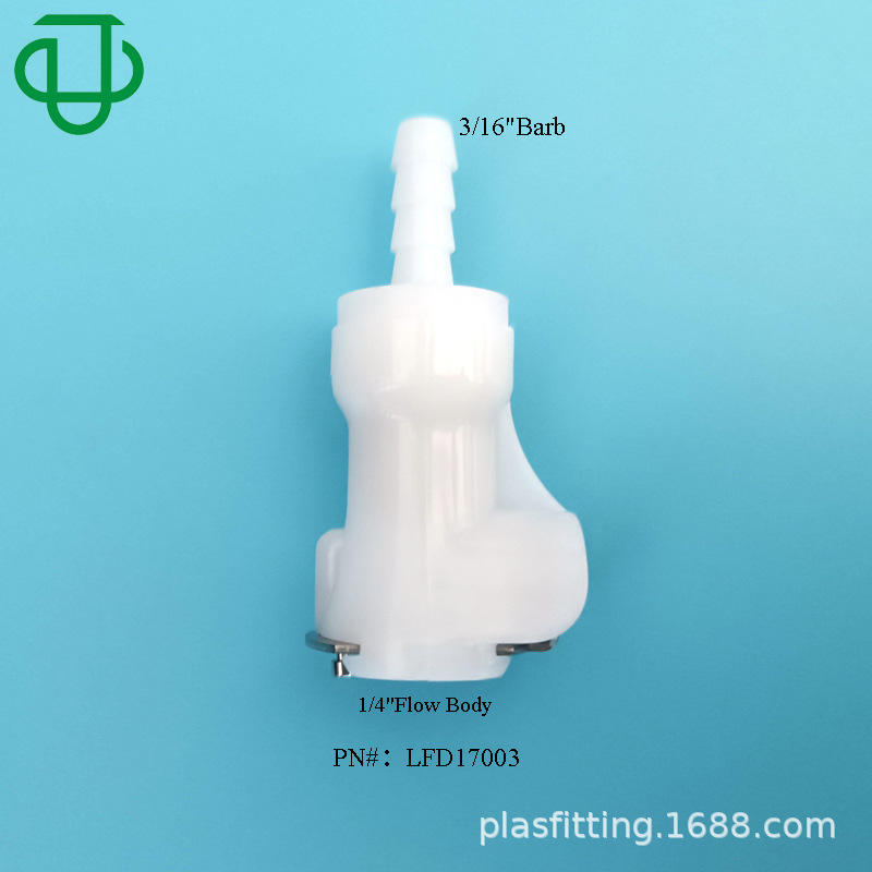 ข้อต่อพลาสติกแบบเร็วรุ่น JU LFD17003 รูปตัว T พร้อมวาล์วหยุด สำหรับสายยางขนาด 3.2-10.0 มม. เกรดสำหรับการฉีดขึ้นรูป