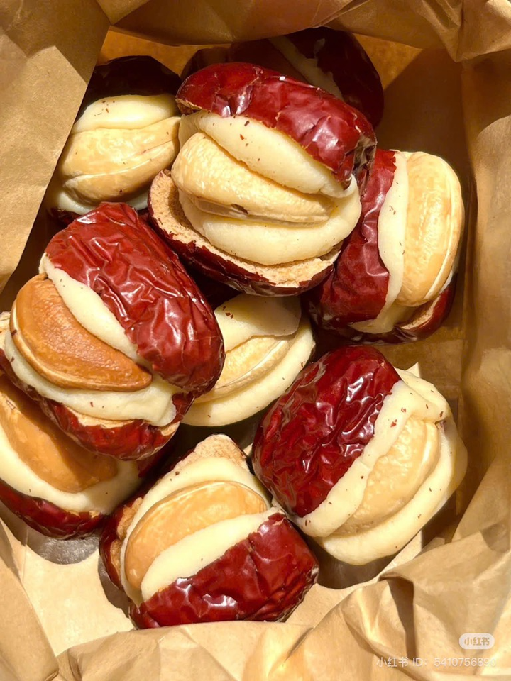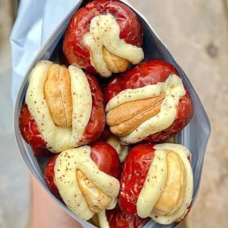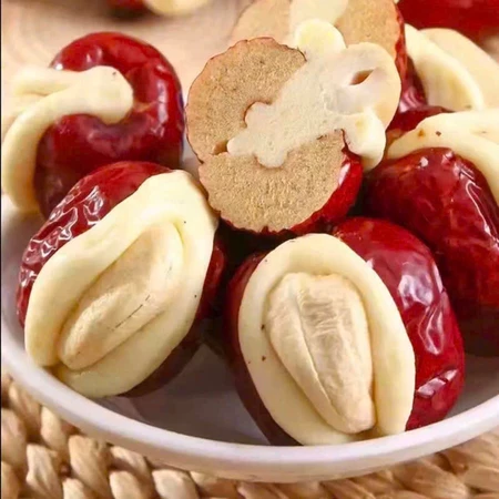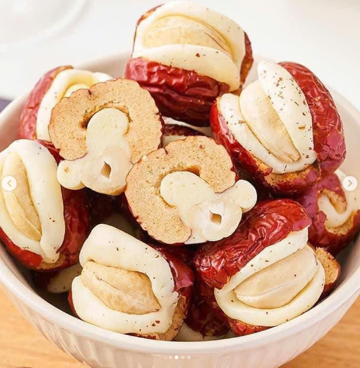 ส่วนผสม:พุทราแดงนมอูฐและเม็ดมะม่วงหิมพานต์