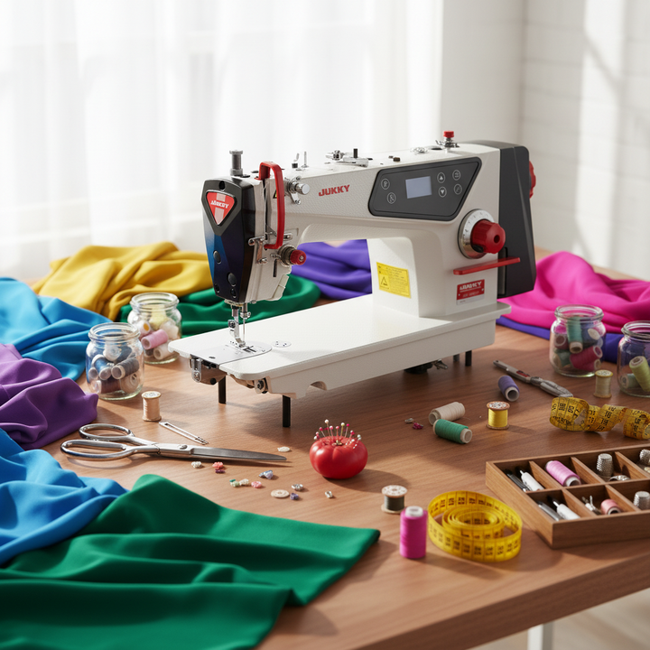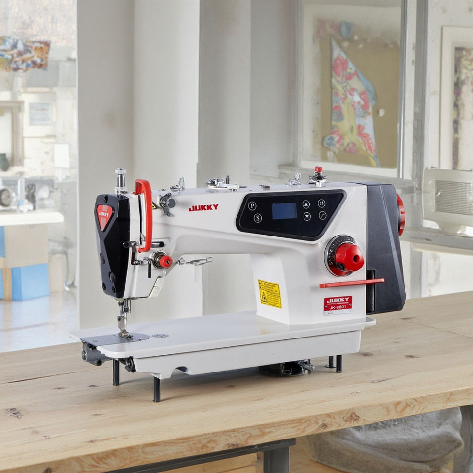 จักรเย็บผ้า JUKKY 9801 คุณภาพดี แบบอุตสาหกรรม ระบบป้อนด้ายอัตโนมัติ คอมพิวเตอร์ควบคุม ความเร็วสูง ขับเคลื่อนโดยตรง แบบล็อคสติทช์