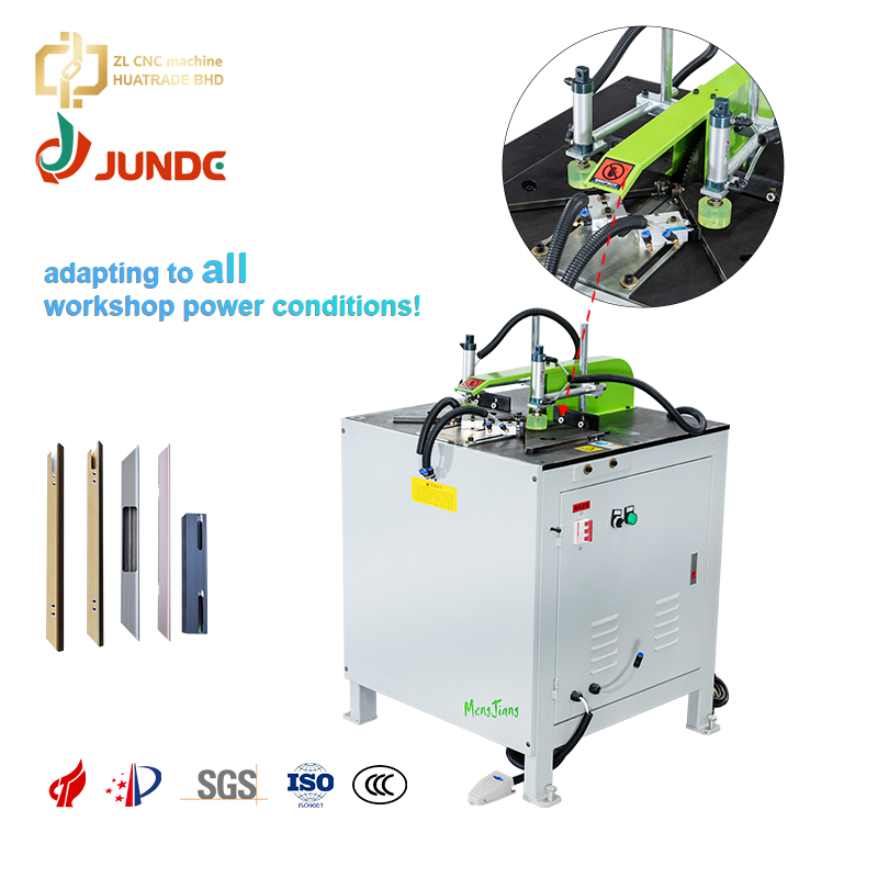เครื่องตัดอลูมิเนียม JUNDE Precision Frame ใบเลื่อย 305 มม. 6000 รอบต่อนาที ระบบยึดอัตโนมัติด้วยลม 90 องศา