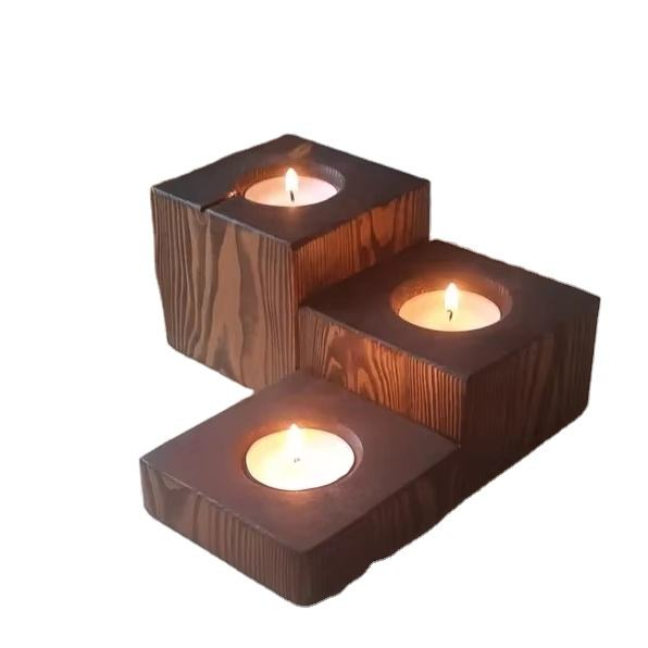 ชุดเชิงเทียนไม้ตกแต่ง JUNJI สีวอลนัทเข้ม ดีไซน์แบบแผ่นไม้สไตล์เรสติก ชุดของขวัญ