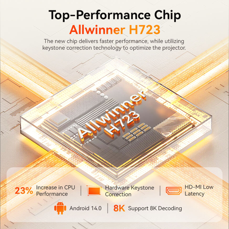 โปรเจคเตอร์ JUNUO รุ่นขายดี Turn 1 Allwinner H723 ความสว่าง 200Ansi ความละเอียด 720P ระบบ Android 14 ใหม่ล่าสุด หน่วยความจำ 1+8GB โปรเจคเตอร์พกพาขนาดเล็กสำหรับใช้ในห้อง