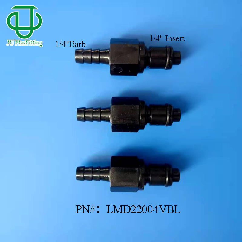 ข้อต่อพลาสติกแบบเร็ว JUPlasFitting L Type POM สีดำ พร้อมวาล์วหยุด ขนาด 6.0-10.0 มม. สำหรับควบคุมการไหลของของเหลว