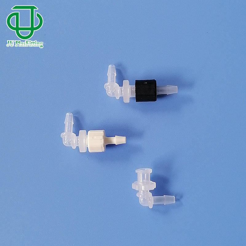 ข้อต่อ JUPlasFitting PP Luer Lock แบบตัวเมีย ขนาด 1/4 นิ้ว ข้อต่อแบบงอ สำหรับท่อส่งของเหลวทางการแพทย์