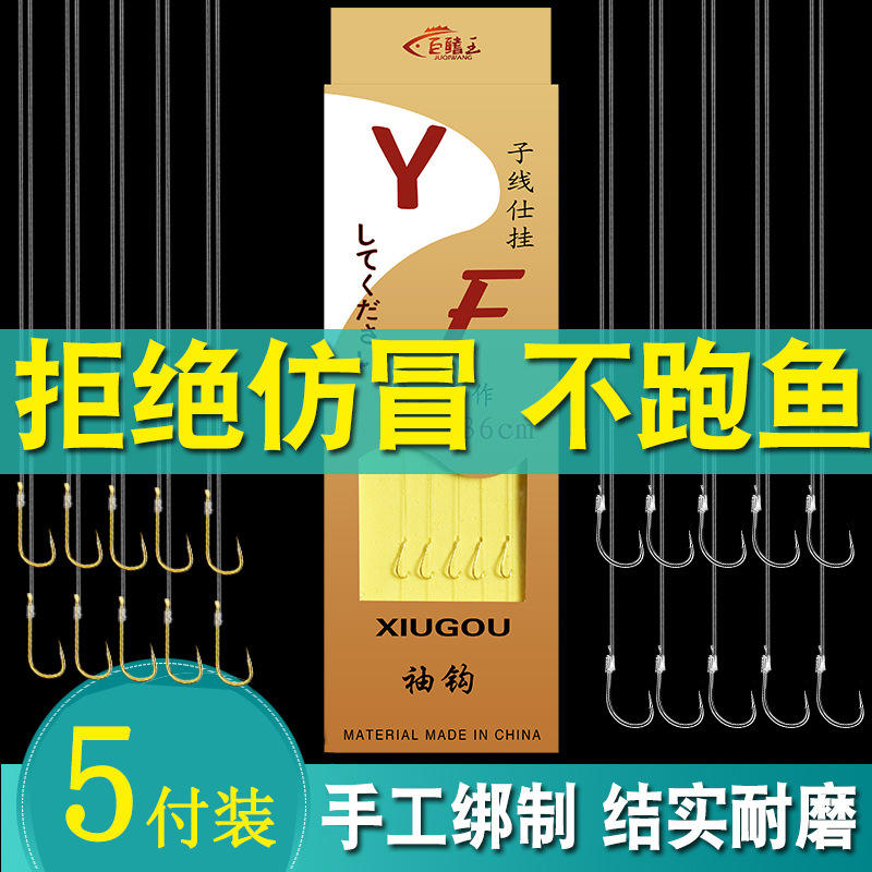ชุดเบ็ดตกปลา JUQIWANG แบบสองตะขอ 5 ตัว ทำจากเหล็กกล้าคาร์บอนสูง ผูกด้วยมือ สำหรับตกปลาคาร์พในน้ำจืด