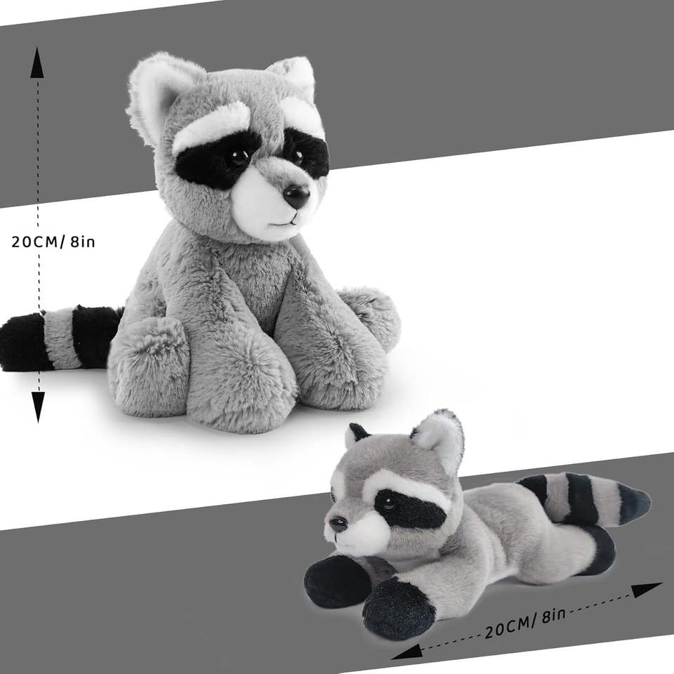 Justqunseen ชุดของเล่นตุ๊กตาแรคคูนเหมือนจริง8นิ้วผ้ากำมะหยี่ velboa นุ่มพร้อมไส้ PP ของขวัญเด็กผู้หญิงน่ารัก