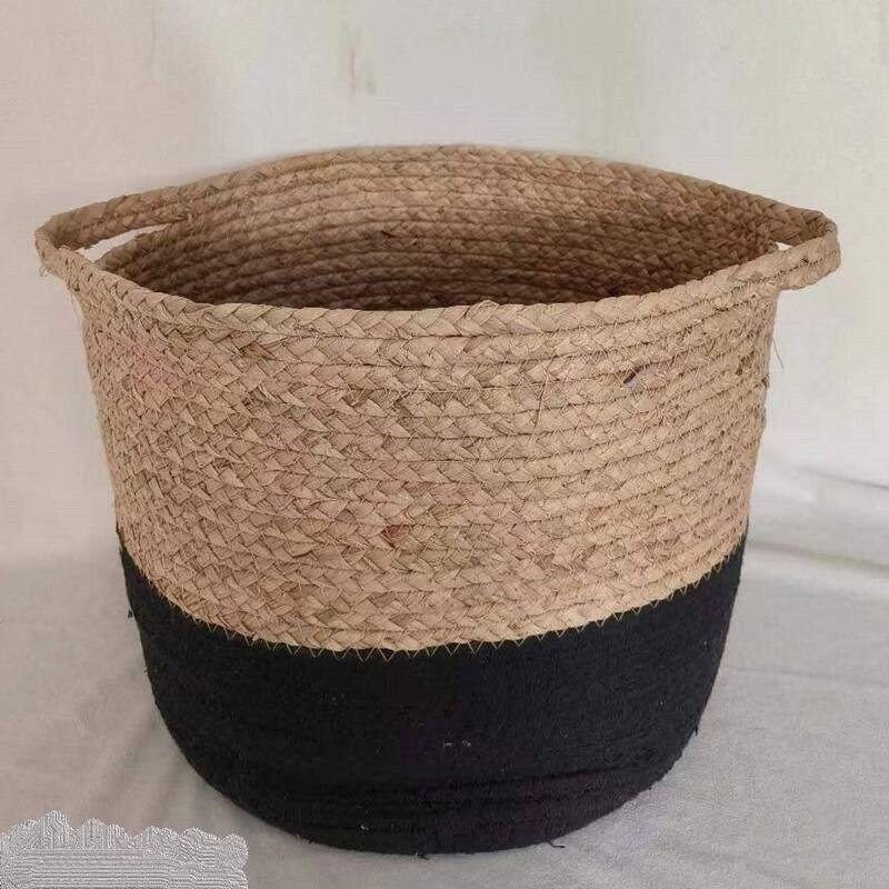 ตะกร้าเก็บของทรงกลมทันสมัย ทำจากปอกระเจาและผ้าฝ้าย เป็นมิตรกับสิ่งแวดล้อม ใช้งานได้หลากหลาย
