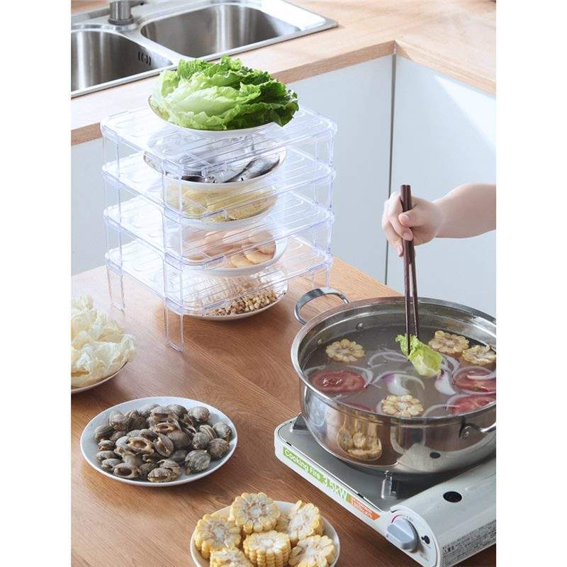 ชั้นวางของในตู้เย็น JWXB514 แบบซ้อนได้ รูปทรงสี่เหลี่ยมผืนผ้า สำหรับจัดระเบียบตู้เย็นในครัว ไม่ต้องติดตั้ง