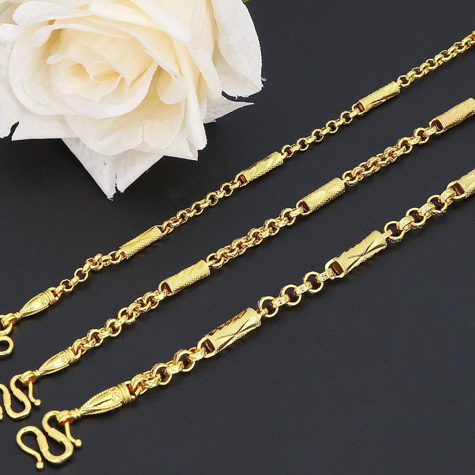 สร้อยคอทองชุบ 14k 24k แบบ Cuban Curb Link สไตล์ฮิปฮอป ขนาด 3 มม. 4 มม. 5 มม. สำหรับผู้ชาย ยี่ห้อ JXX ทำจากทองเหลือง