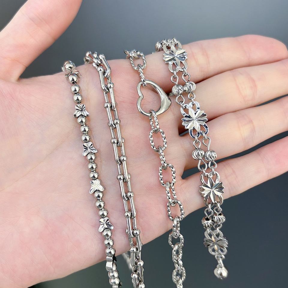 โรงงาน JXX ขายส่งกำไลข้อมือรูปหัวใจประดับลูกปัดแฟชั่นผู้หญิงหลากหลายสไตล์ ชุบเงิน