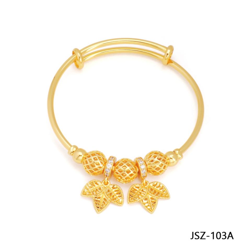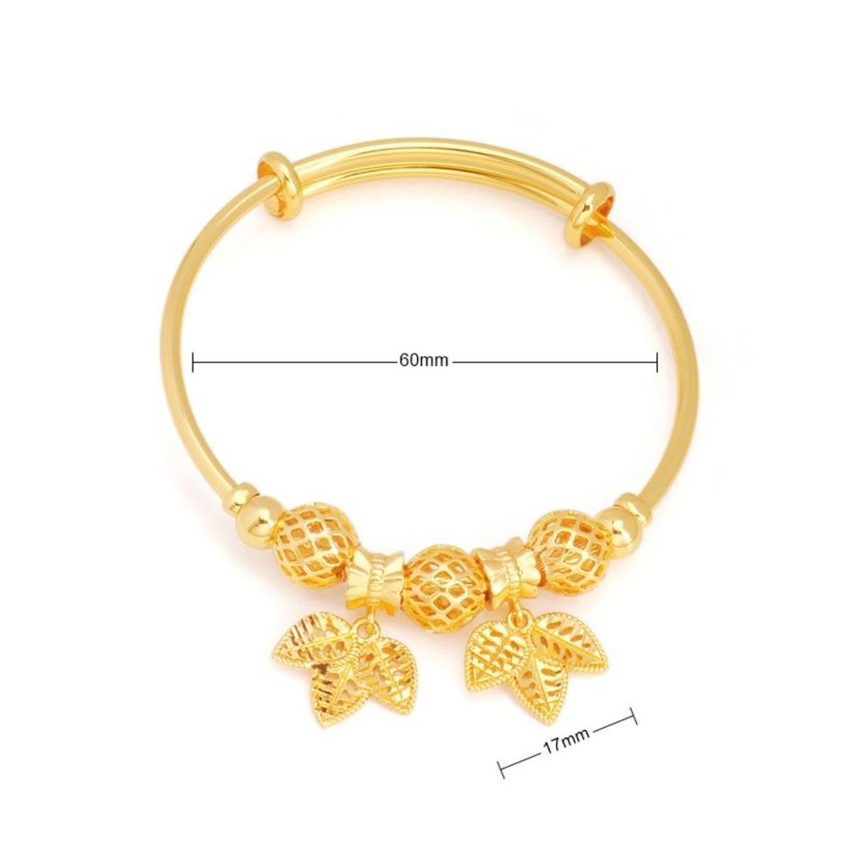 JXX สินค้าขายดี กำไลข้อมือแบบดึง-ดัน ชุบทอง 24k ประดับเพชร รูปใบไม้ หัวใจ ผีเสื้อ สำหรับผู้หญิง