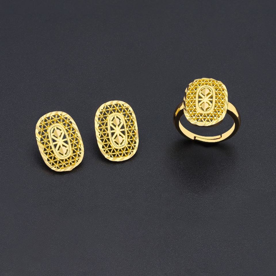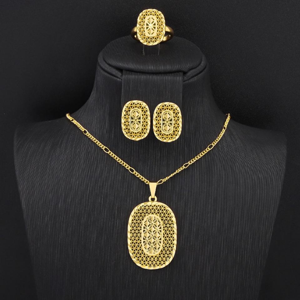 ชุดเครื่องประดับทองเหลืองชุบทองคำแท้ JXX 3 ชิ้น สร้อยคอพร้อมจี้ ต่างหู และแหวน สำหรับผู้หญิง ดีไซน์ทันสมัย เหมาะสำหรับงานปาร์ตี้ ขายดี เครื่องประดับแฟชั่น