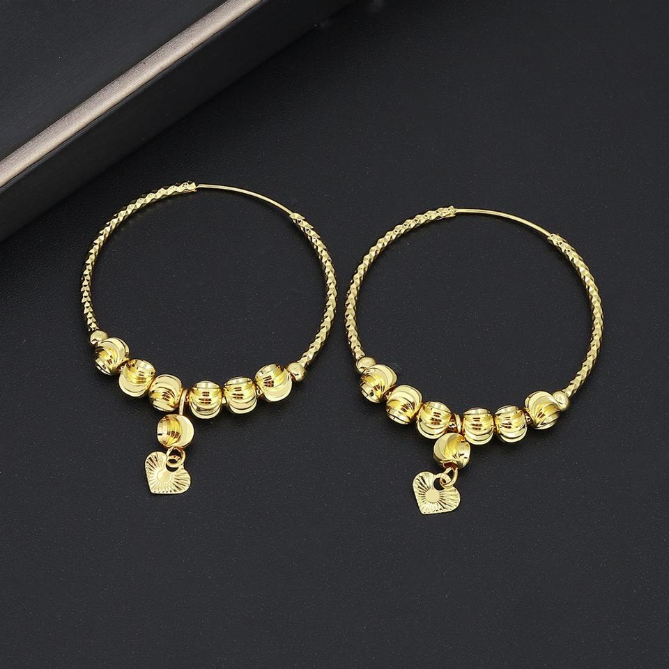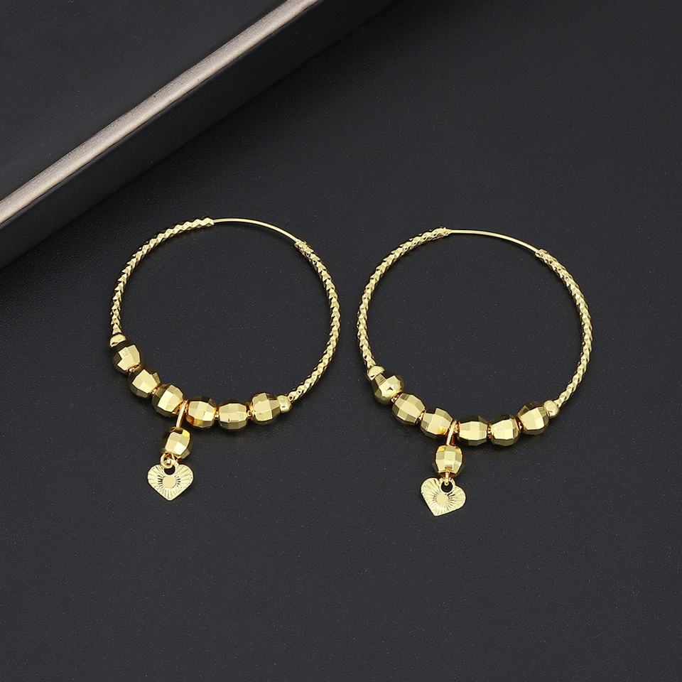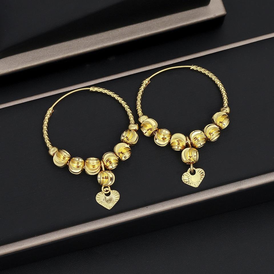 ต่างหูห่วงทรงทันสมัยสำหรับทุกเพศ รุ่น JXX ชุบทอง ทำจากทองเหลือง ประดับด้วยลูกปัดรูปหัวใจ เหมาะสำหรับงานปาร์ตี้