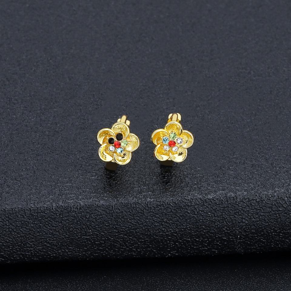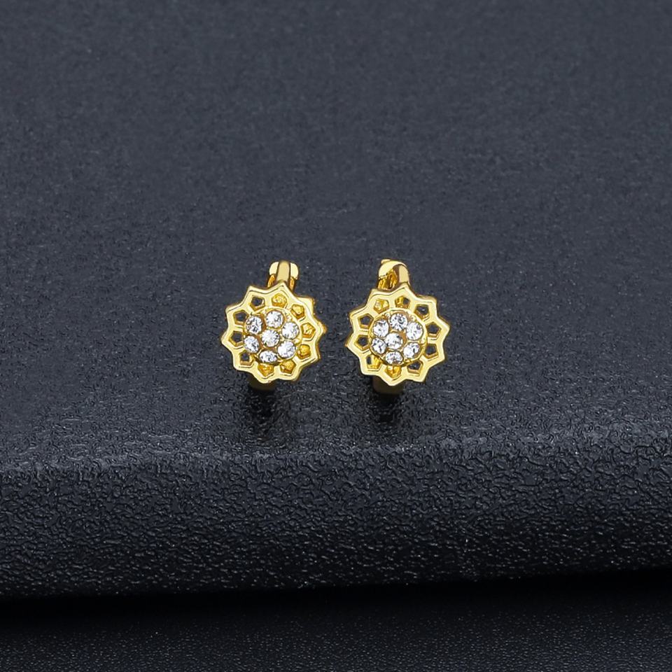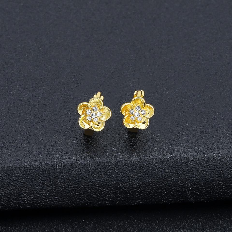 ต่างหูห่วงเล็กทรงดอกไม้ประดับเพชรซิร์คอนชุบทอง 24K คุณภาพดีสำหรับผู้หญิง ราคาขายส่ง JXX