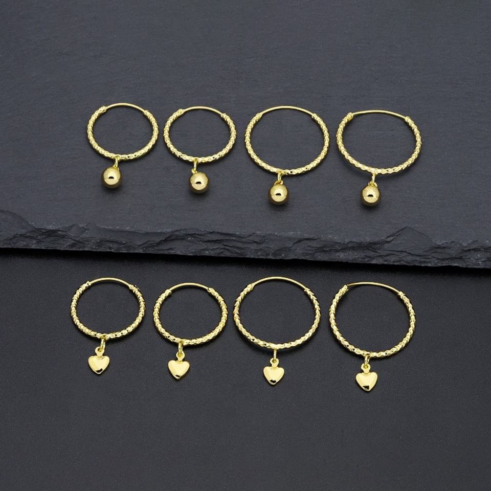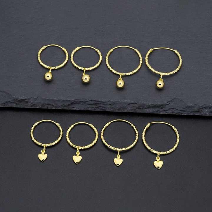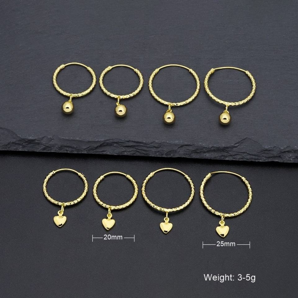 ต่างหูห่วงใหญ่ทรงทันสมัยสำหรับผู้หญิง JXX ดีไซน์รูปหัวใจและระฆัง ชุบทองใหม่ ทำจากทองเหลือง ประดับเพชรและมุก
