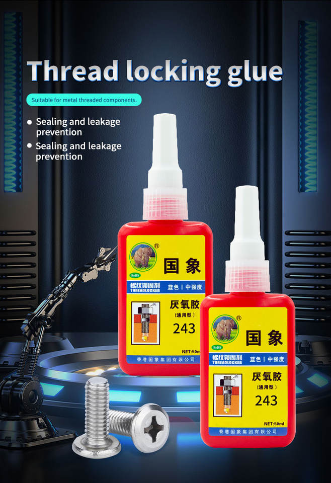 กาวล็อคเกลียว JXY 243 ความแข็งแรงปานกลาง ทนน้ำมัน ชนิดแอนแอโรบิก สำหรับยึดและปิดผนึกเกลียว ใช้กับงานไม้และบรรจุภัณฑ์ ขนาด 50 มล.