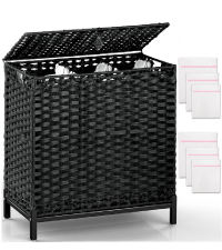 ตะกร้าผ้า JY 112L แบบสานด้วยมือจากวัสดุ PP พร้อมขาโลหะยกสูง ตะกร้าใส่ผ้าพร้อมถุงซับในแบบถอดได้ 2 ใบ