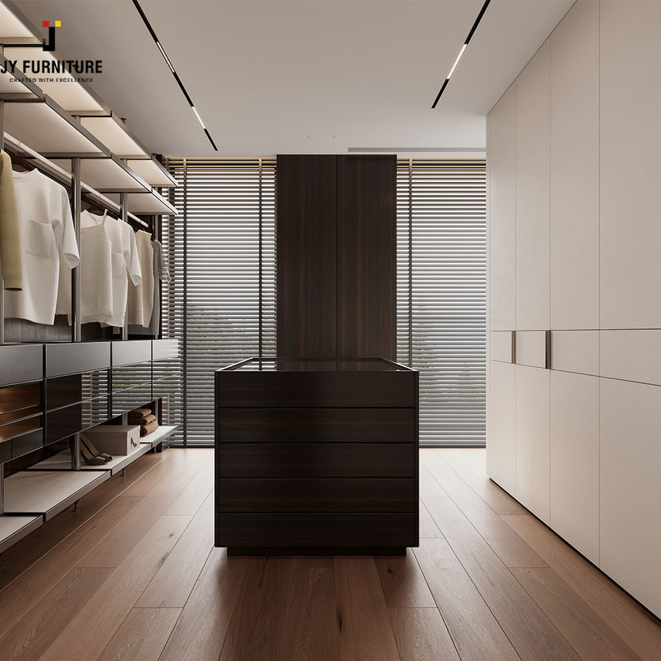 โรงงานเฟอร์นิเจอร์ JY เวียดนาม ตู้เสื้อผ้าไม้ดีไซน์ยุโรป เรียบง่าย ทันสมัย แบบโมดูลาร์สั่งทำพิเศษ สำหรับห้องนอนหรูหราในบ้านพักตากอากาศ