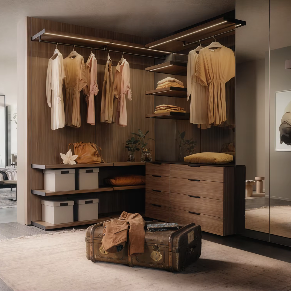 ตู้เสื้อผ้าแบบวอล์คอินสไตล์ยุโรปสั่งทำพิเศษจาก JY Project สำหรับห้องนอน ตู้เสื้อผ้าติดผนัง สำหรับบ้าน โรงแรม อพาร์ตเมนต์