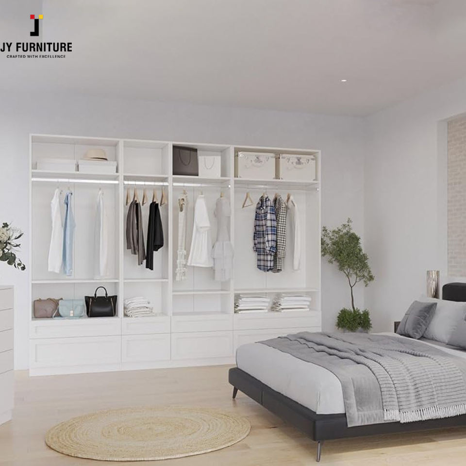 ตู้เสื้อผ้าไม้ดีไซน์ใหม่ทันสมัยสีขาวแบบเรียบง่าย ตู้เสื้อผ้าจัดระเบียบเสื้อผ้า ตู้เสื้อผ้าห้องนอนสั่งทำพิเศษจาก JY Project