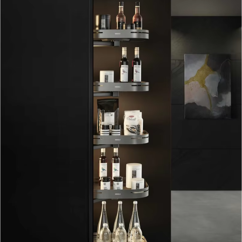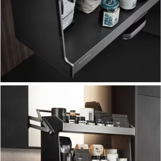 อุปกรณ์:ตะกร้าลิ้นชัก, รางลิ้นชัก, ก๊อกน้ำ, มือจับและลูกบิด, หลักการ, ซูซานขี้เกียจเก็บ, ถังเก็บข้าวสาร, นิ้วเท้าเตะ
