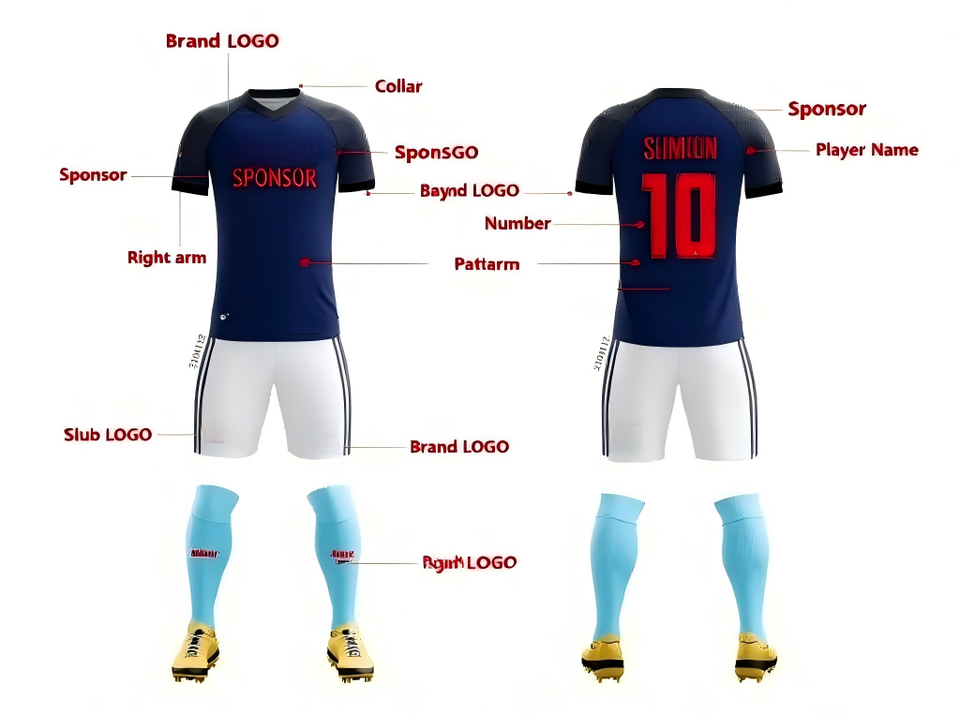 ตำแหน่งโลโก้:ด้านหน้า, ด้านหลัง, แขนเสื้อด้านขวา, ขอบล่าง, หลังคอ