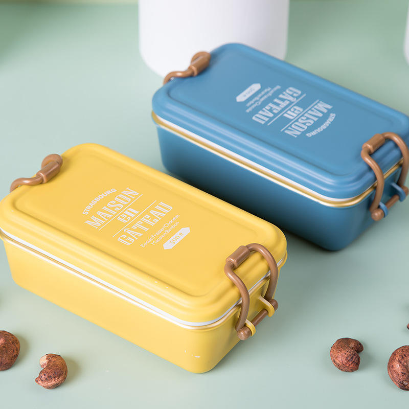 กล่องอาหารกลางวันเบนโตะสองชั้นแบบ JY13ฝาปิดพลาสติกภาชนะกันรั่วแบบพกพาเป็นมิตรกับสิ่งแวดล้อมสำหรับทำงานและเดินทาง
