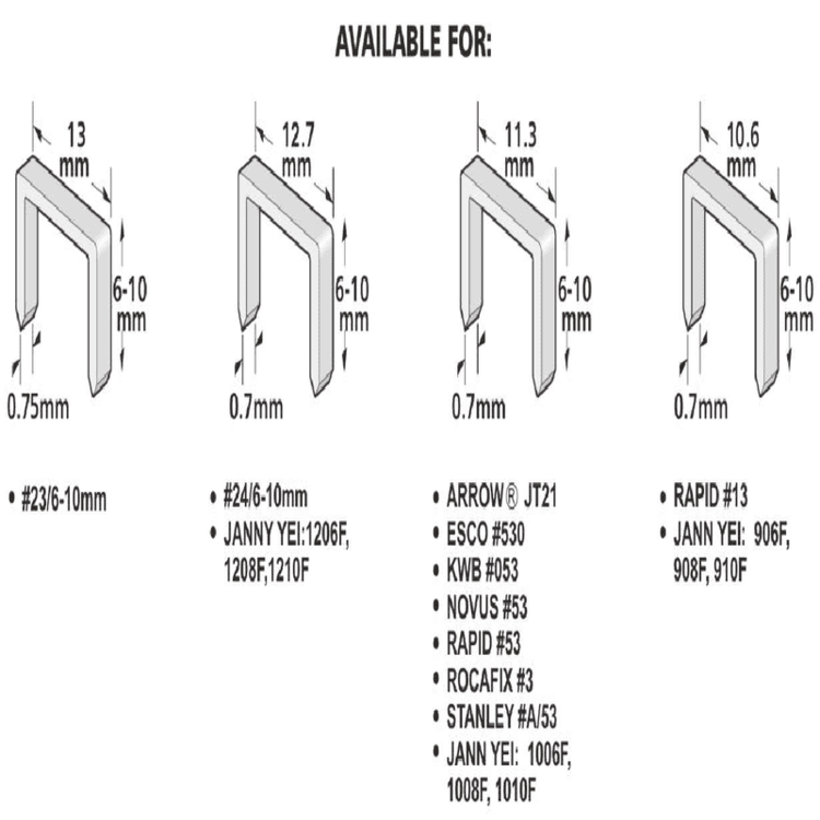 Type of Nail:Common staples (6-10mm JT-21,R13, 23,24 staples)