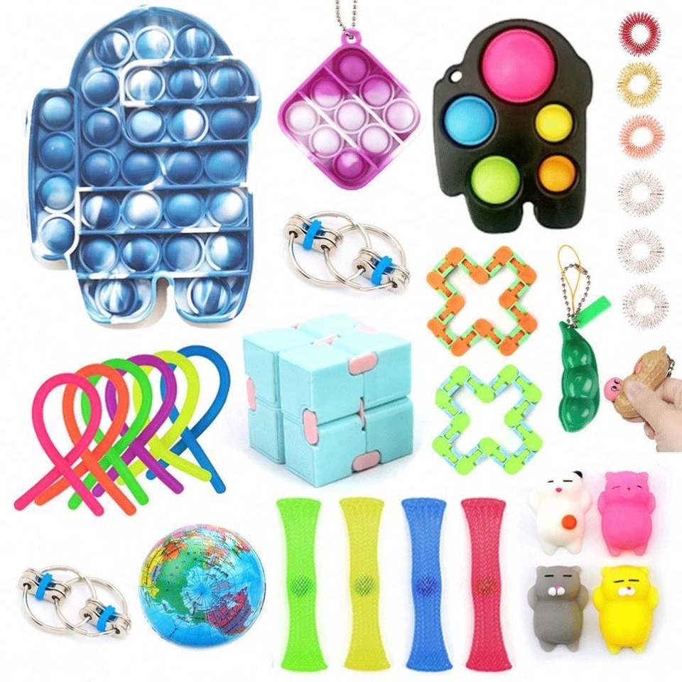 ชุดของเล่นเสริมพัฒนาการประสาทสัมผัสออลอินวัน JYTZ0101 ของเล่นคลายเครียด ของเล่นแปลกใหม่และของเล่นแกล้งคน ผลิตจากพลาสติก ได้รับการรับรองความปลอดภัย บรรจุในกล่องเดียว