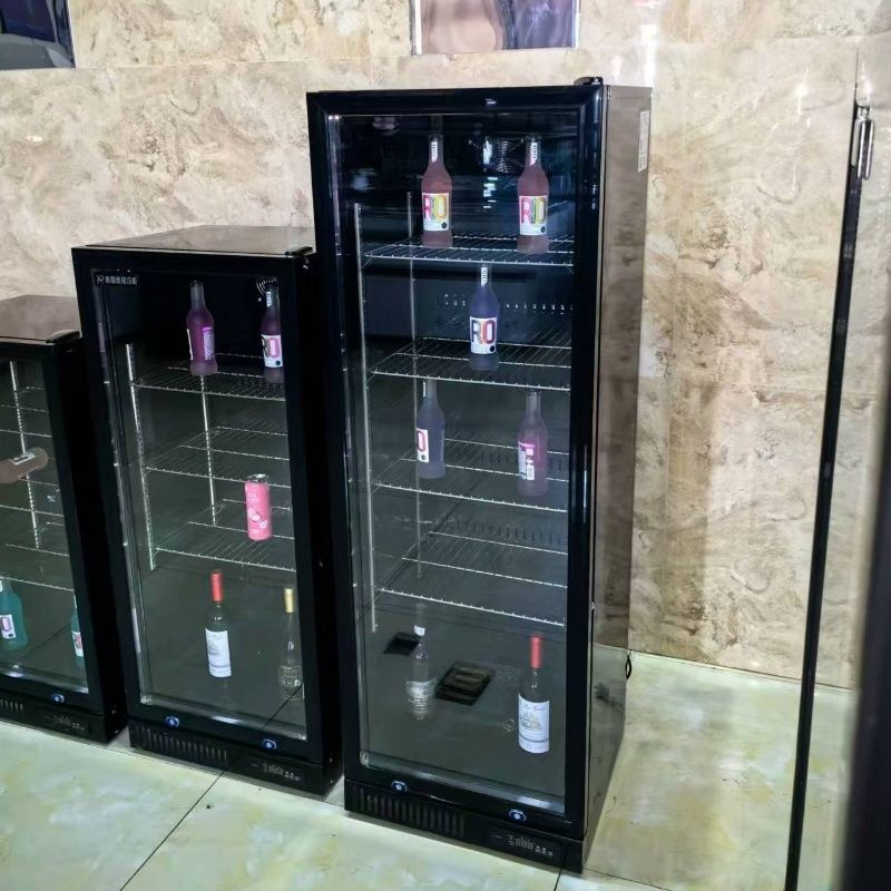 ตู้เก็บวิสกี้แจ็ค แดเนียลส์ จอห์นนี่ วอล์คเกอร์ แบบสามประตู เทคโนโลยีป้องกันน้ำแข็งเกาะ ชั้นวางปรับได้ สำหรับผับและคลับ