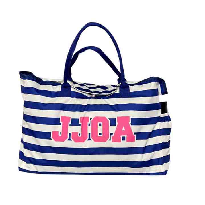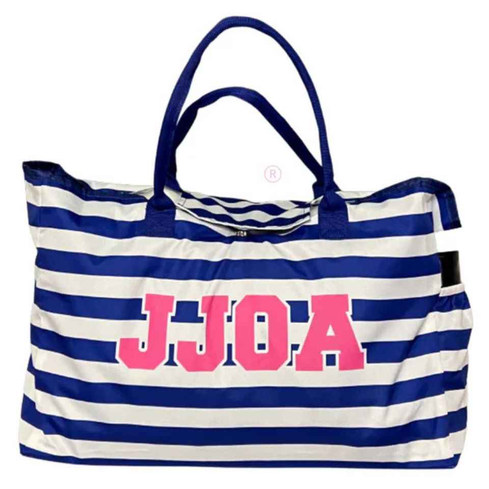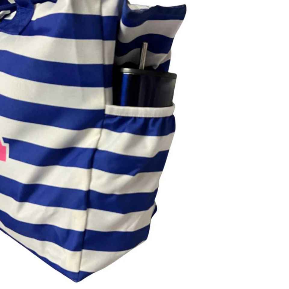 กระเป๋าชายหาดลายทางสีน้ำเงินขาวขนาดใหญ่ ยี่ห้อ Jack and Jill สำหรับเดินทาง สะพายไหล่ ผลิตโดย OEM