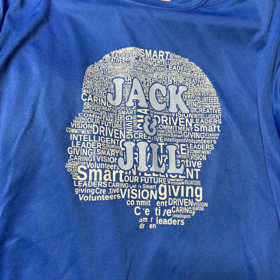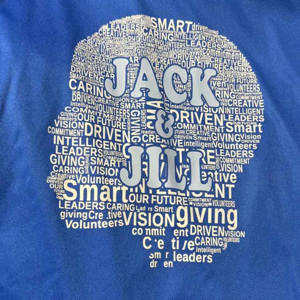 Jack and Jill Blue Dry Fit T shirt Youth Since 1938 Family Unity Service Play Hard Together Creative Giving Vision Shirt