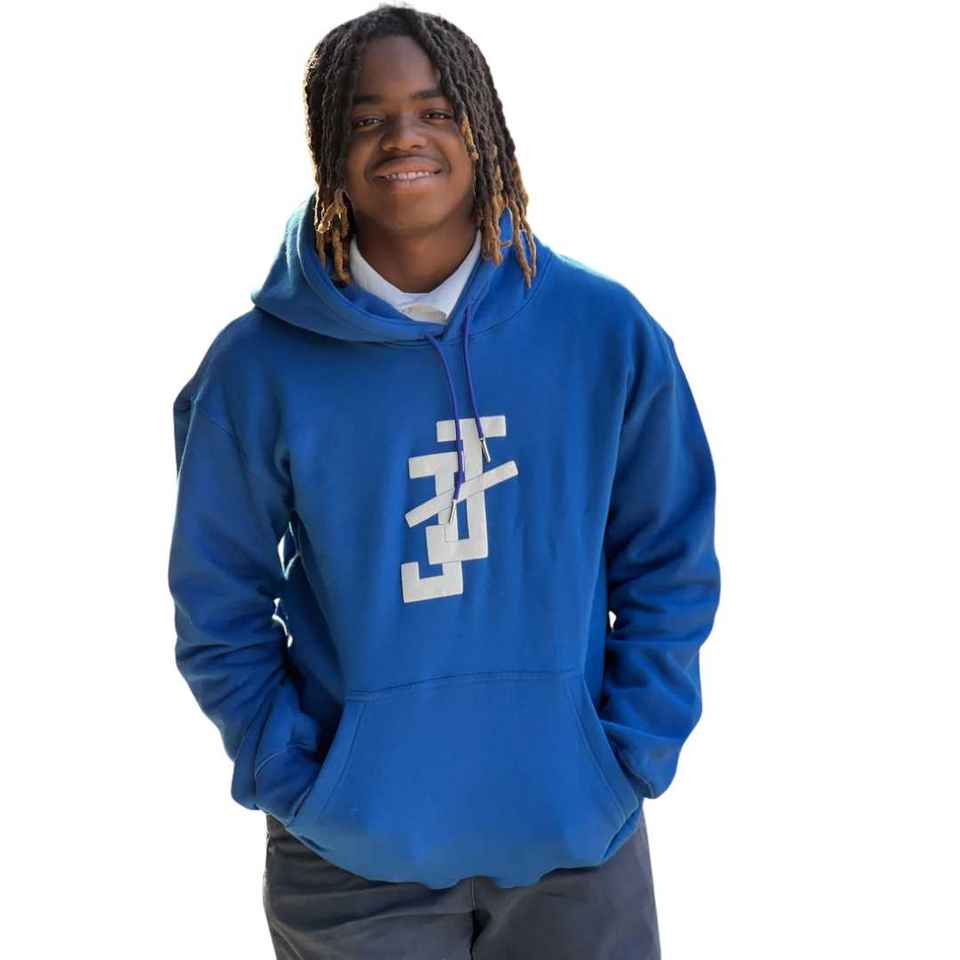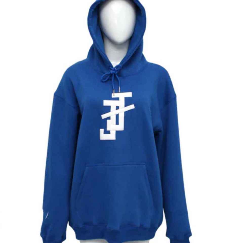 เสื้อฮู้ดแจ็คแอนด์จิลสีน้ำเงินพร้อมโลโก้สีขาว เสื้อฮู้ดสวมใส่สบายและมีสไตล์สำหรับทุกเพศ เสื้อสเวตเชิ้ตสำหรับใส่ลำลองในชีวิตประจำวัน