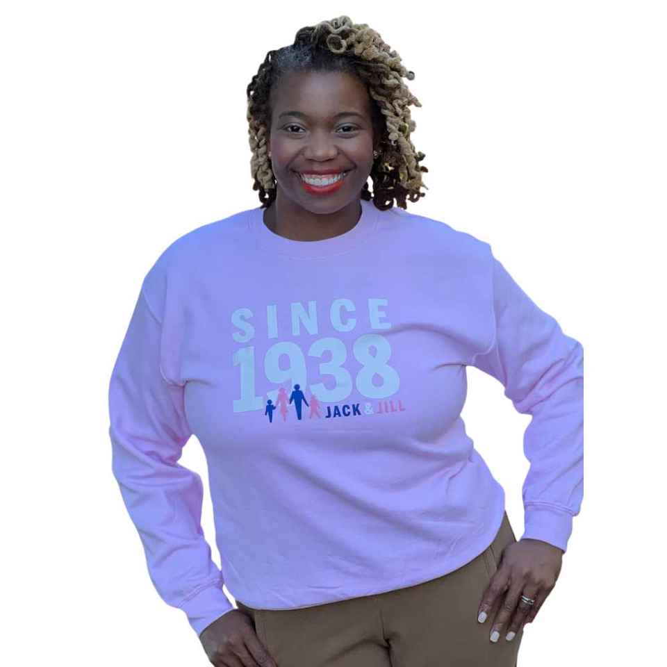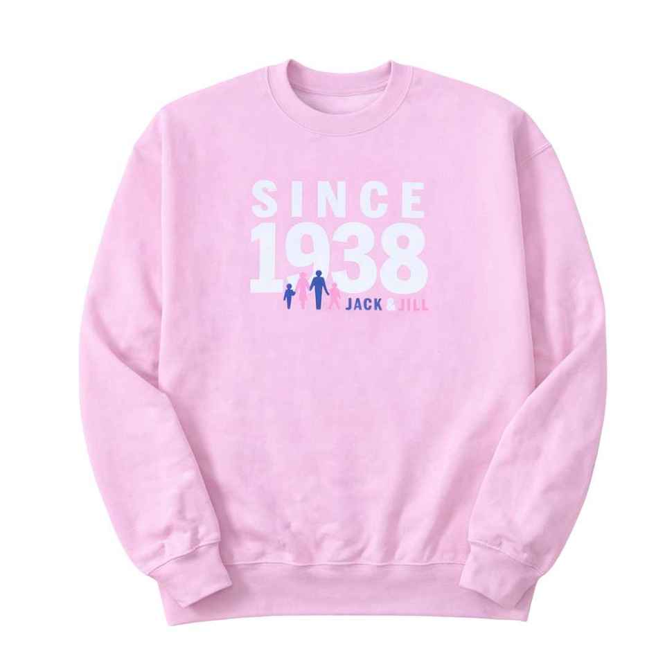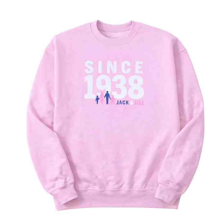 เสื้อสเวตเชิ้ตคอกลมแจ็คแอนด์จิลสีชมพูตั้งแต่ปี 1938 เสื้อสเวตเชิ้ตลายกราฟิกสำหรับผู้ชายและผู้หญิงสวมใส่สบายเสื้อสเวตเชิ้ตแขนยาว