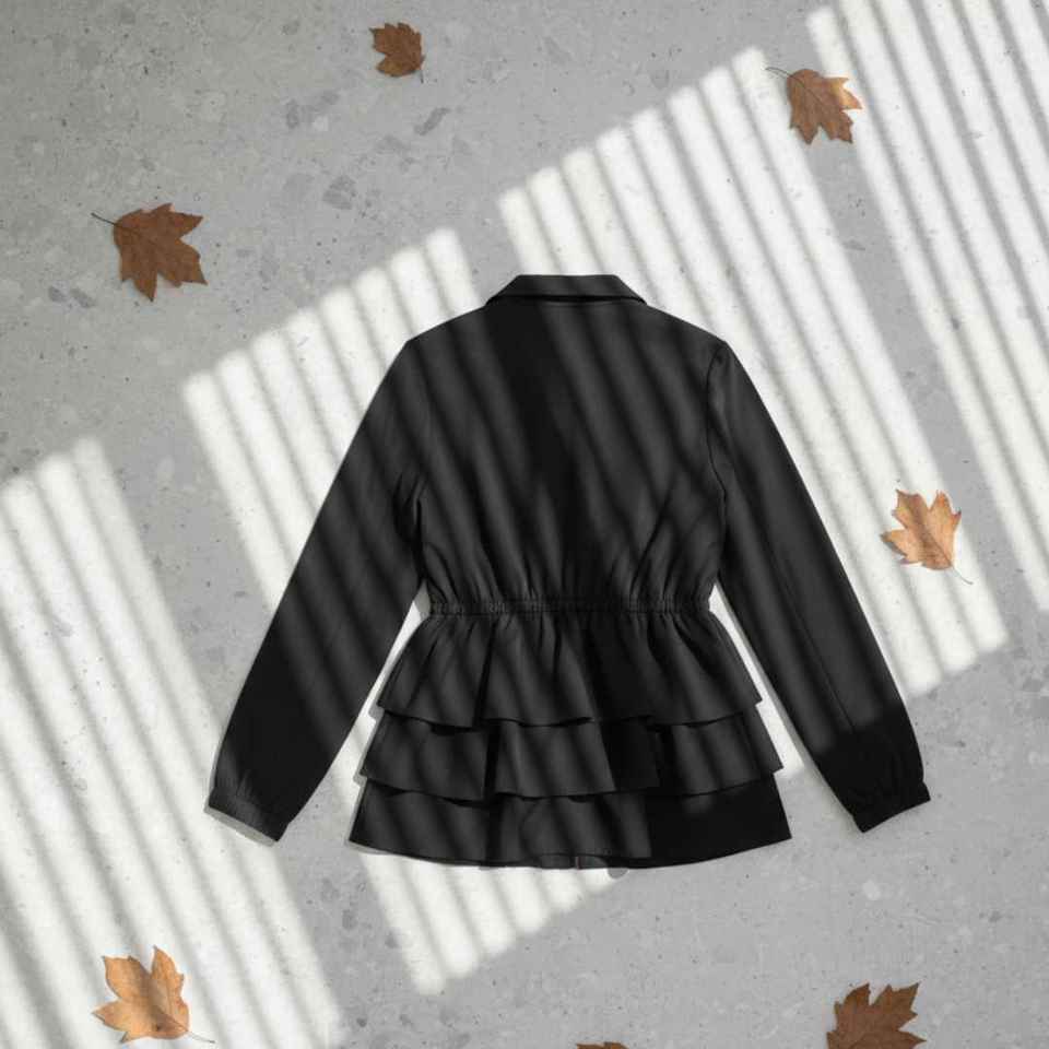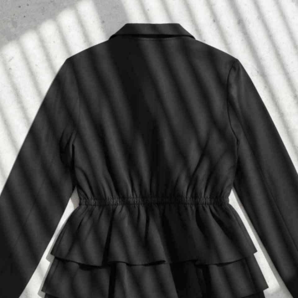 แจ็ค จิล เสื้อแจ็คเก็ตทรงเปปลัมสำหรับผู้หญิง สีกรมท่า ซิปหน้า สไตล์ลำลอง แฟชั่นชายระบาย ปักลาย ซับในผ้าฝ้าย มีสไตล์