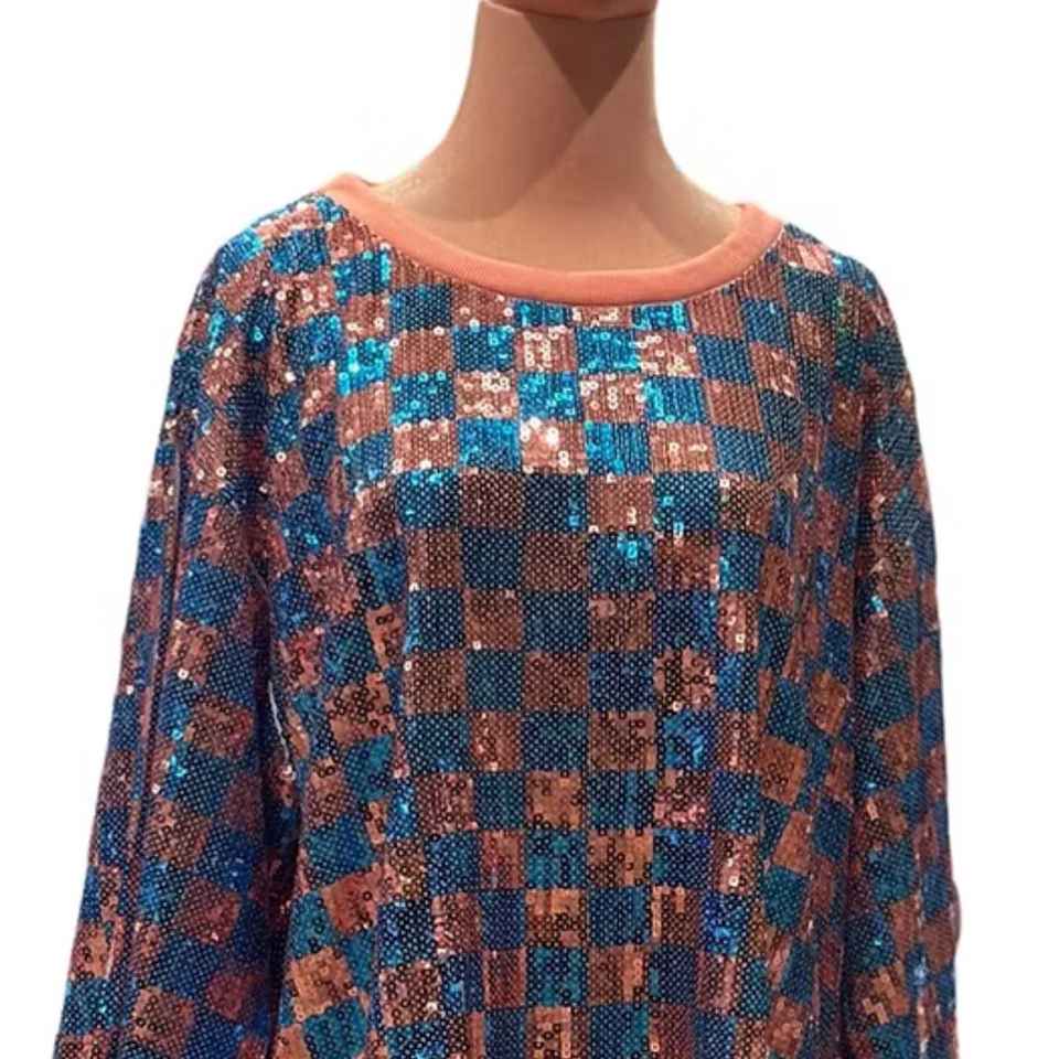 เสื้อคลุมแจ็คแอนด์จิลลายตารางปักเลื่อมสำหรับผู้หญิง แขนยาว ประดับด้วยกลิตเตอร์วิบวับ ทรงหลวม แฟชั่นสำหรับงานปาร์ตี้ เสื้อผ้าสั่งตัดจากบูติก
