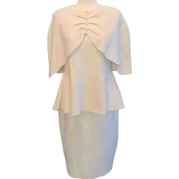 ชุดเซ็ตถักนิตติ้ง 3 ชิ้น สีขาว สำหรับผู้หญิง แบรนด์ Jack and Jill ประกอบด้วยกระโปรงสูทสุดหรู พร้อมเสื้อคลุม เหมาะสำหรับงานพิธีการ งานโบสถ์ หรือโอกาสพิเศษ ชุดแฟชั่นสไตล์บูติก