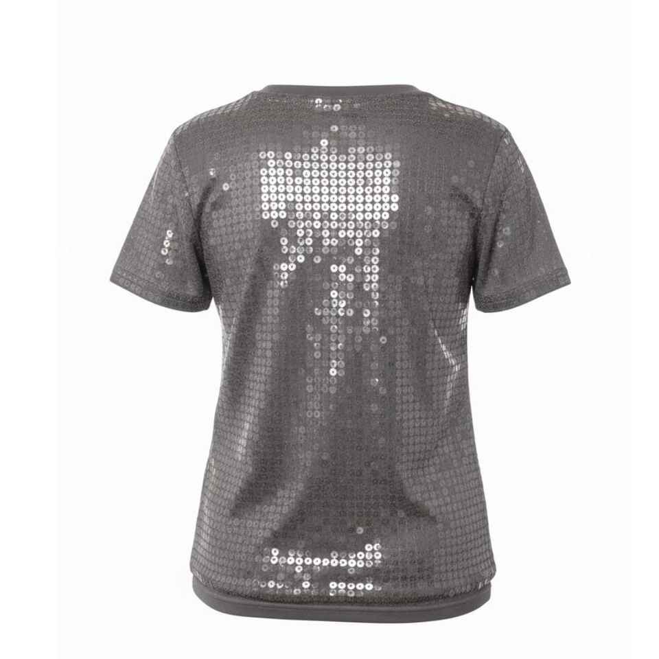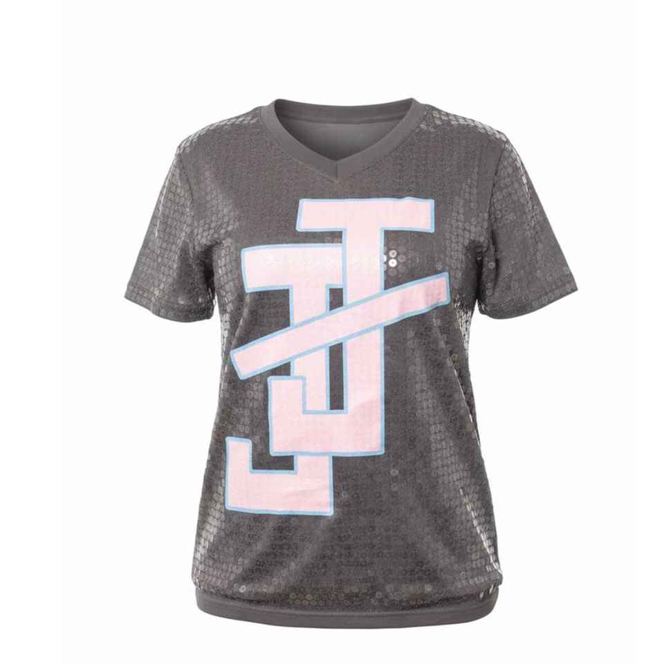 แจ็คแอนด์จิลเสื้อยืดแฟชั่นลำลองแขนสั้นสีเทาประดับเลื่อมตัวอักษรกรีกสำหรับผู้หญิงแบบกำหนดเองได้