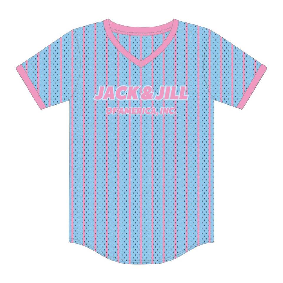 เสื้อยืดตาข่ายแบบสวมหัวแจ็คแอนด์จิลล์ของอเมริกาเสื้อยืดเบสบอลแบบสวมหัวสีน้ำเงิน