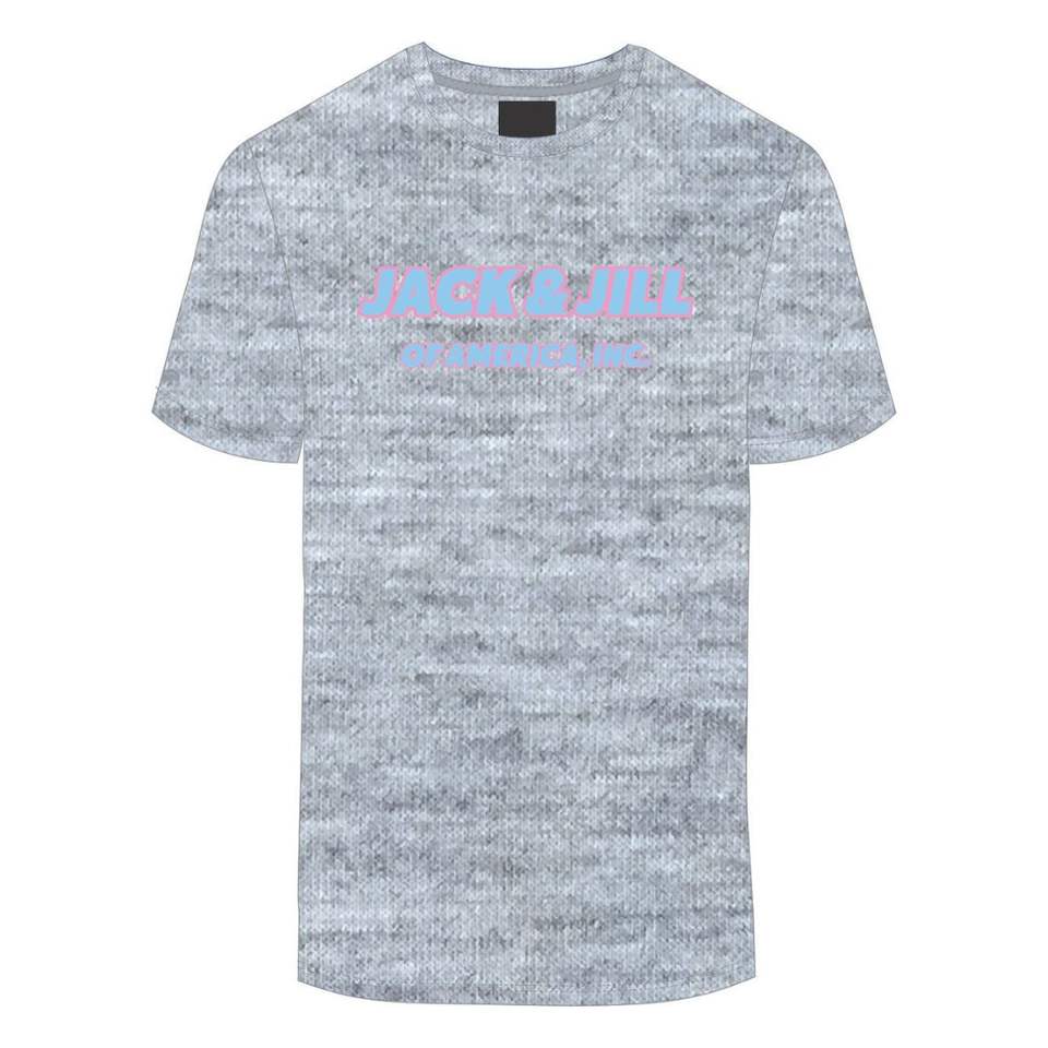 เสื้อยืดผ้าฝ้ายสีเทา Jack and Jill of America สีฟ้าปักลายกำมะหยี่สีดำ Civic & Professional สำหรับองค์กร